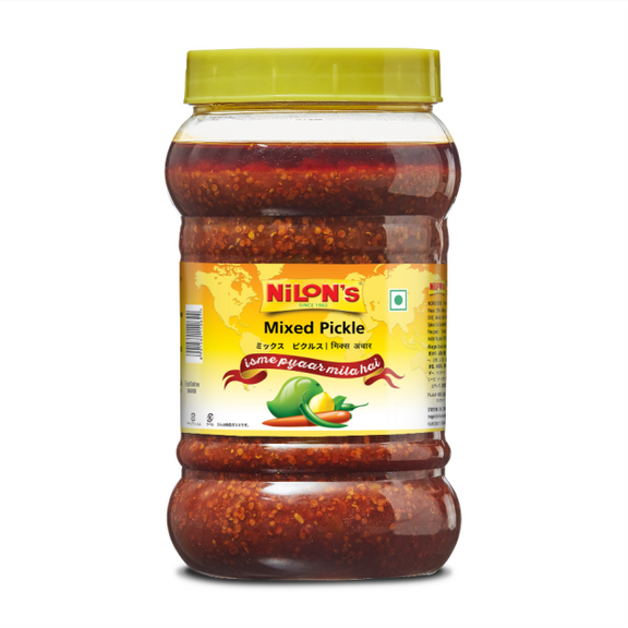 ニロンのミックスピクルスは、新鮮なマンゴー、ライム、ニンジン、その他旬の野菜を贅沢に使用した、風味豊かな一品です。特製スパイスをブレンドし、濃厚なマスタードオイルで漬け込んだこのピクルスは、一口ごとに酸味、辛味、そして旨味が絶妙なバランスで広がります。