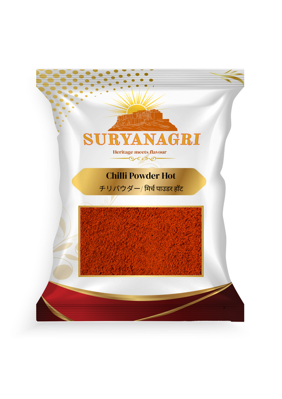 スリヤナグリチリパウダーホットで、ラジャスタンの激辛のエッセンスをあなたのキッチンに。インド中西部で栽培された最高級の唐辛子から作られたこのチリパウダーは、強烈な辛さ、鮮やかな赤色、そして豊かな香りで知られています。