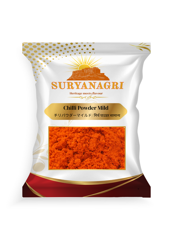 辛さを抑えながら、赤唐辛子の豊かな風味と鮮やかな色をお楽しみください。Suryanagriチリパウダー マイルドは、プレミアムインドチリパウダーの本格的な味わいを楽しみつつ、バランスの取れたマイルドな辛さを好む方のために特別に開発されました。