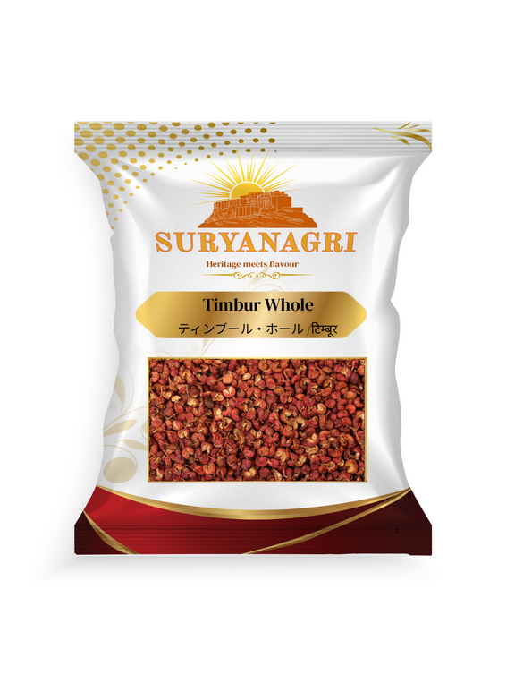 スリヤナグリ・ティンバー・ホール(四川山椒、ティムールとも呼ばれる)は、鋭い柑橘系の香りと、舌にピリピリと痺れるような独特の感覚を持つ、ユニークなヒマラヤ産スパイスです。このエキゾチックなスパイスは、ネパール料理や北東料理に欠かせない食材であり、幅広い料理に大胆な風味と個性を与えます。