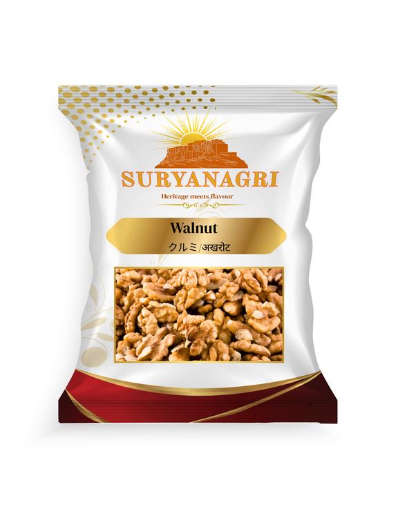 Suryanagri Walnutsは、豊かな土の風味とサクサクとした食感を持つ、最高品質のナッツです。オメガ3脂肪酸、タンパク質、抗酸化物質、必須ミネラルが豊富に含まれたクルミは、心臓の健康、脳機能、そして全身の健康をサポートする栄養の宝庫です。